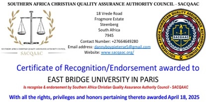 The South African Christian Quality Assurance Authority Council (SACQAAC) has officially recognised and endorsed East Bridge University. This momentous achievement furthers EBU’s global standing as an internationally acclaimed higher educational institution, bringing quality education to all.